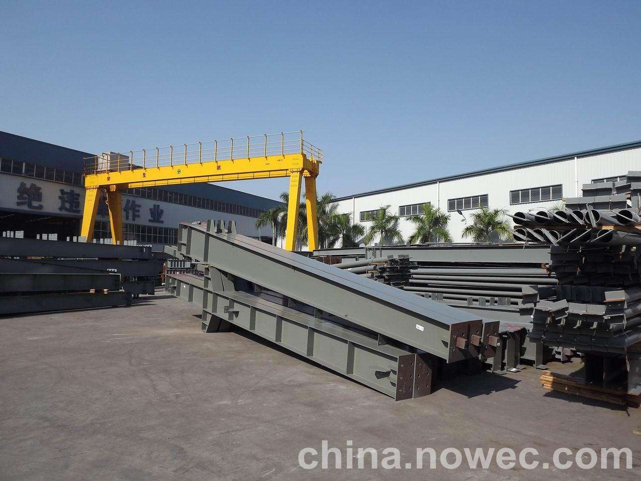 条状单元一般沿长跨方向分割,其宽度约为1~3个网格,其长度为l2或l2/2(l2为短跨跨距)。块状单元一般沿忻州网架平面纵横向分割成矩形或正方形单元。每个单元的重量以现有起重机能胜任为准。条(块)与条(块)之间可以直接拼装,也可空一网格在高空拼装。由于条(块)状单元是在地面拼装,因而高空作业量较高空散装法大为减少,拼装支架也减少很多,又能充分利用现有起重设备,故较经济。这种安装方法适用于分割后网架的钢度和受力状况改变较小的各类中小型网架,如两向正交正放四角锥、正放抽空四角锥等网架。